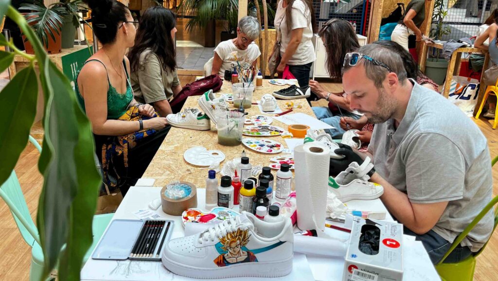 Organisez un atelier d’initiation à la customisation dans votre établissement pour vos clients et/ou collaborateurs. Nous les accompagnons tout au long d’un atelier DIY pour créer une paire à leur images. Un atelier de customisation permet de placer les participants au cœur des opérations en mettant en avant l’expression individuelle et la créativité. Offrez à vos participants une expérience immersive où ils deviennent les maîtres de leur création, tout en renforçant leur lien avec votre entreprise.